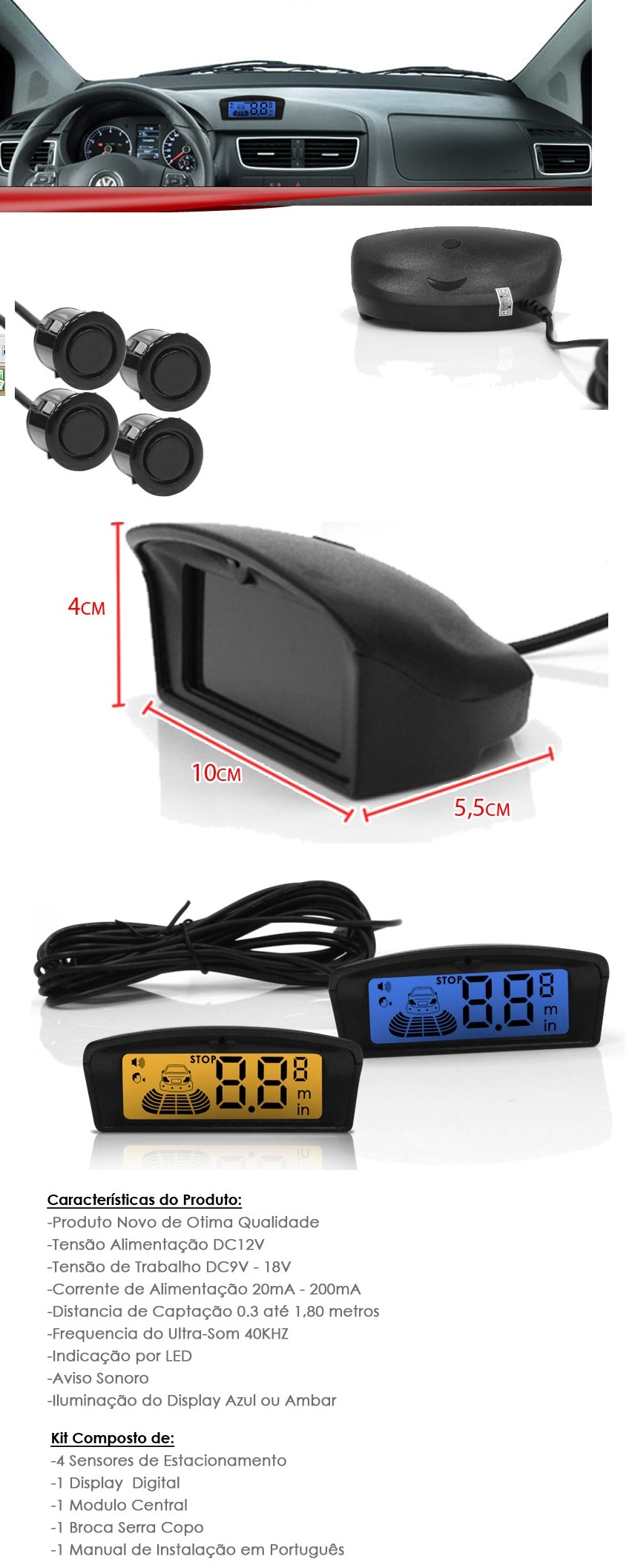 SENSOR DE ESTACIONAMENTO PARA PAINEL KIT c/4