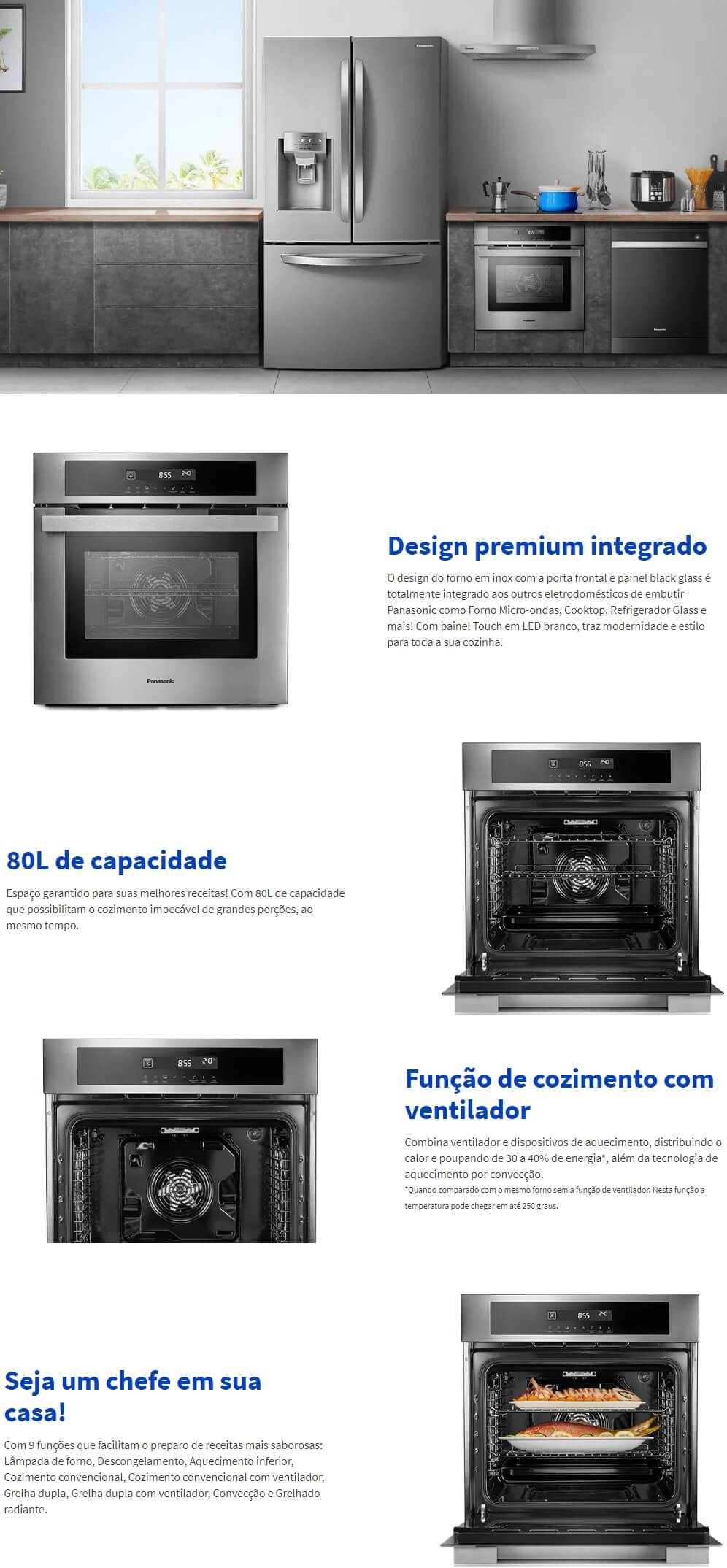 FORNO ELETRICO DE EMBUTIR PANASONIC 80L - 2700W C/ FUNÇÃO GRILL - INOX 220V