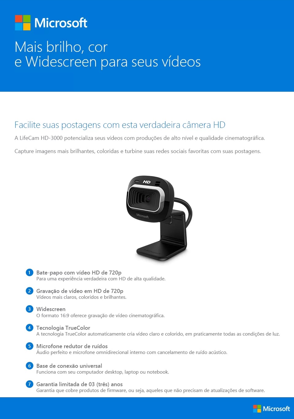WEBCAM HD MICROSOFT 720PX - C/ MICROFONE - BASE DE CONEXÃO UNIVERSAL