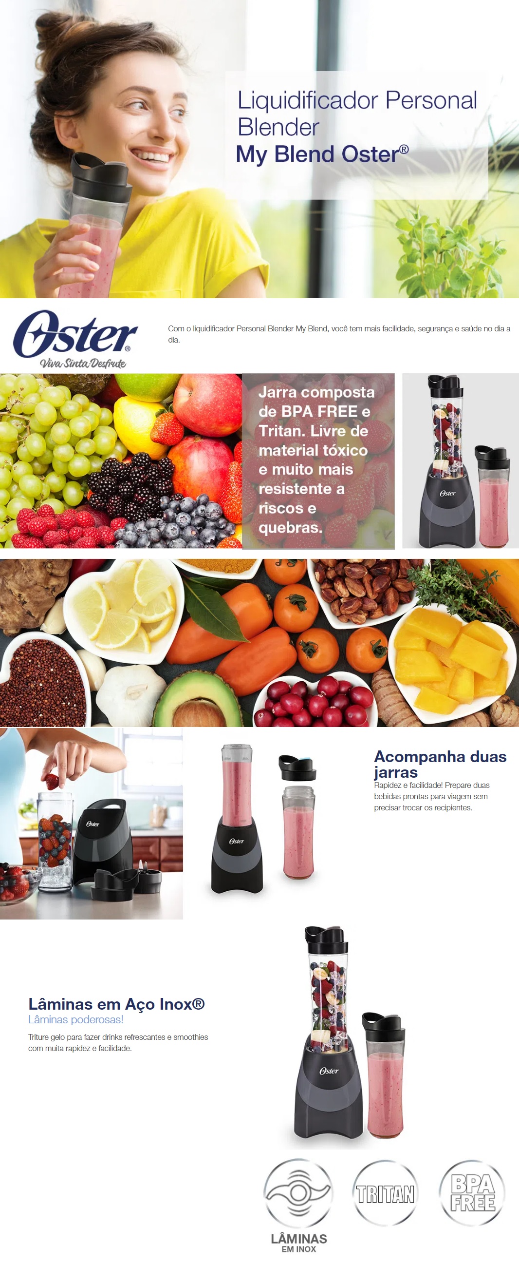 MIXER BLENDER OSTER 250W - C/ 2 JARRAS E LAMINAS DE AÇO INOX
