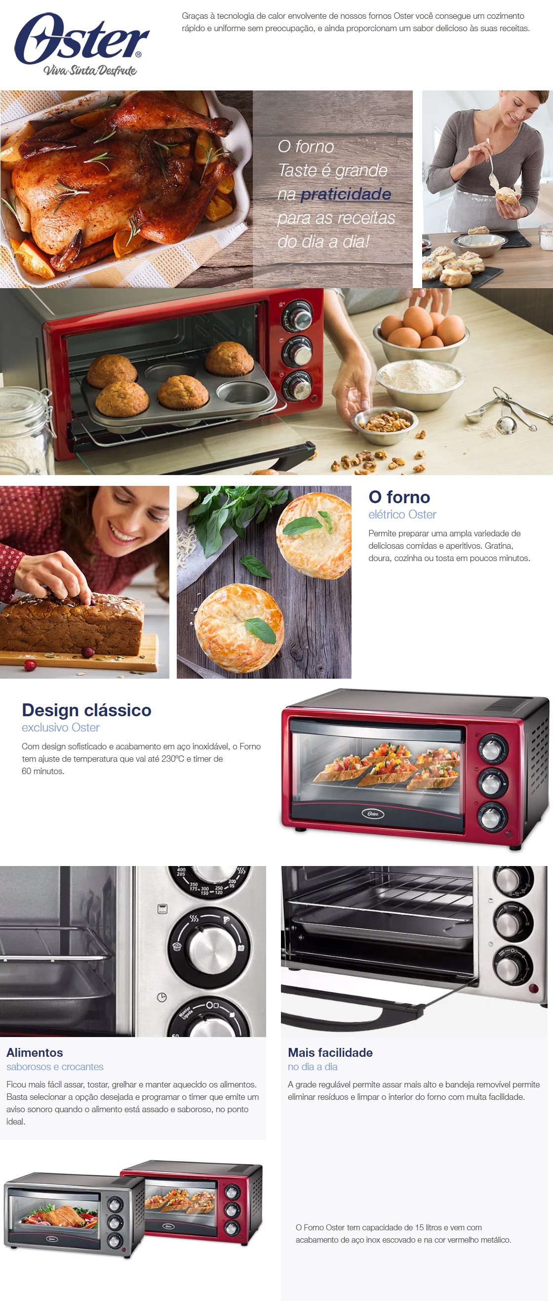 FORNO ELETRICO OSTER 15L 1300W - C/ TIMER E FUNÇÕES PROGRAMAVEIS - 220V