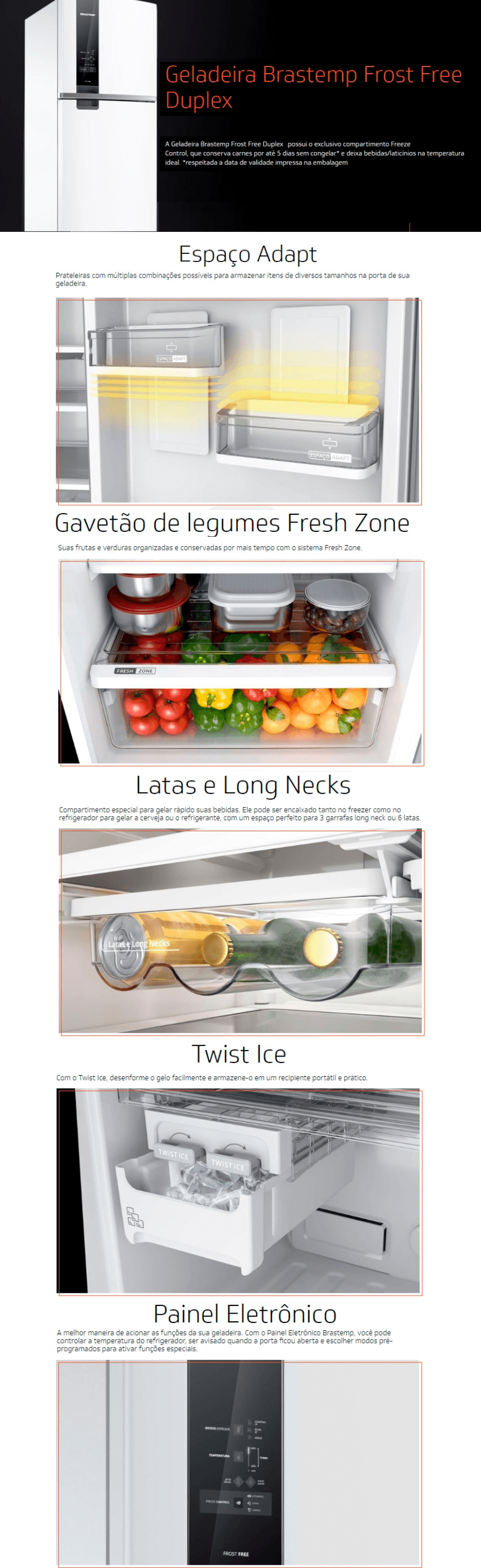 GELADEIRA BRASTEMP 398L Duplex Frost Free Painel Touch - INOX