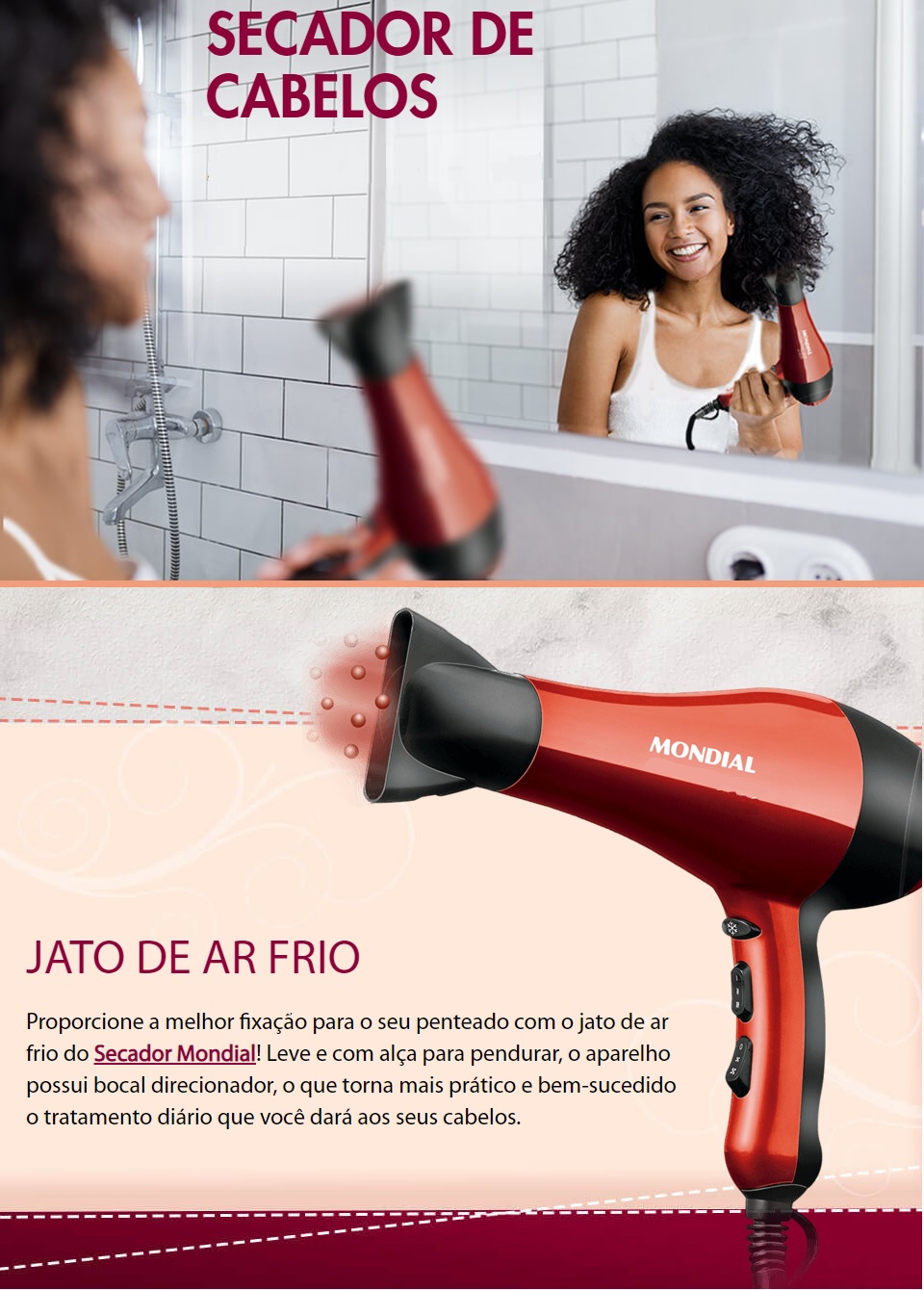 Secador de Cabelos Mondial 1900w Ion Tourmaline Red
