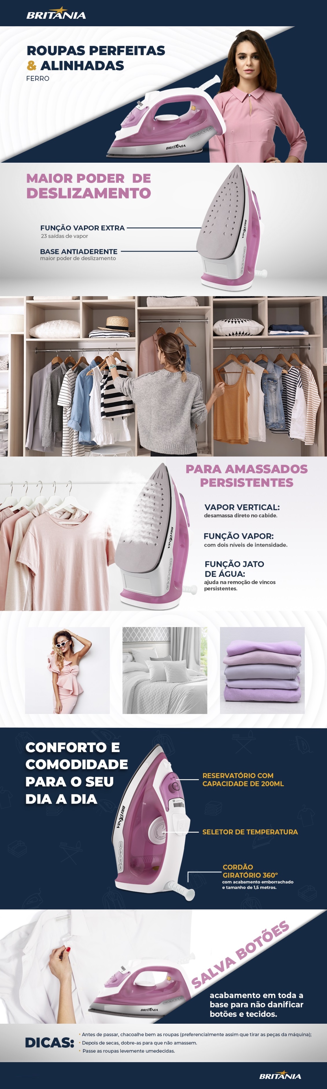 Ferro de Passar a Vapor Britania 220v Rosa Antiaderente 1200W