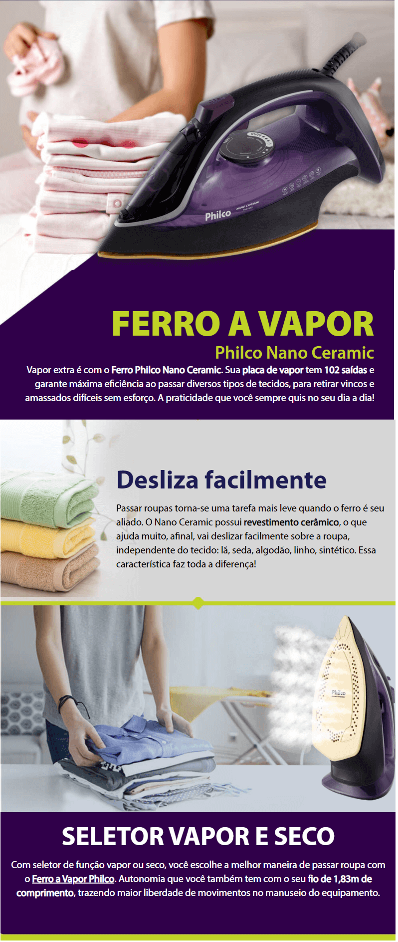 FERRO DE PASSAR ELETRICO A VAPOR PHILCO 1200W - ROXO