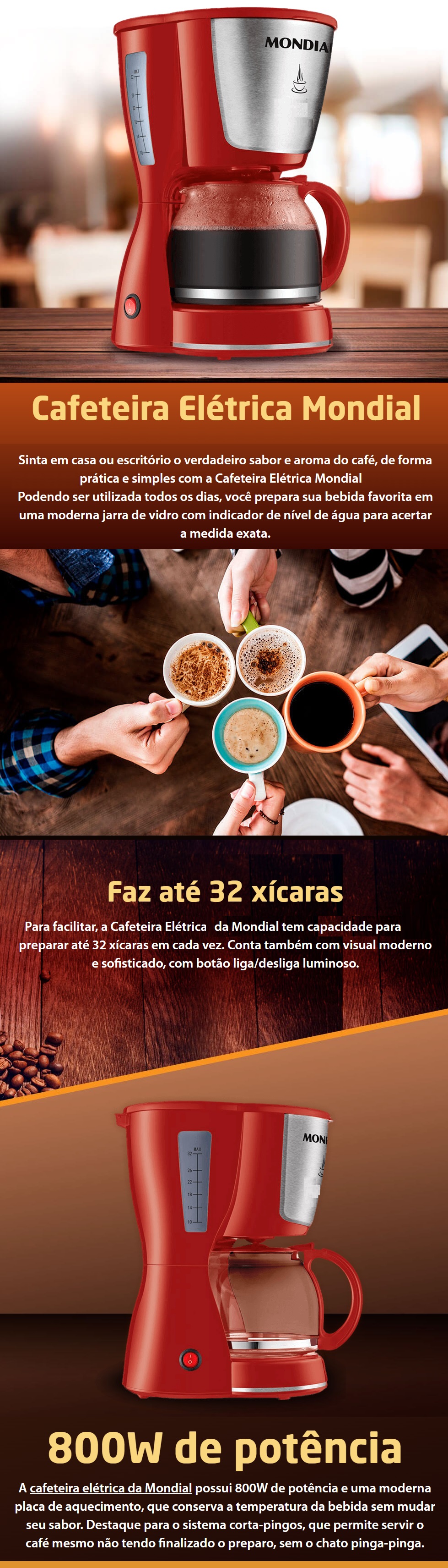 CAFETEIRA ELETRICA MONDIAL 800W 220V VERMELHA - (REVISADA) SEMI-NOVA