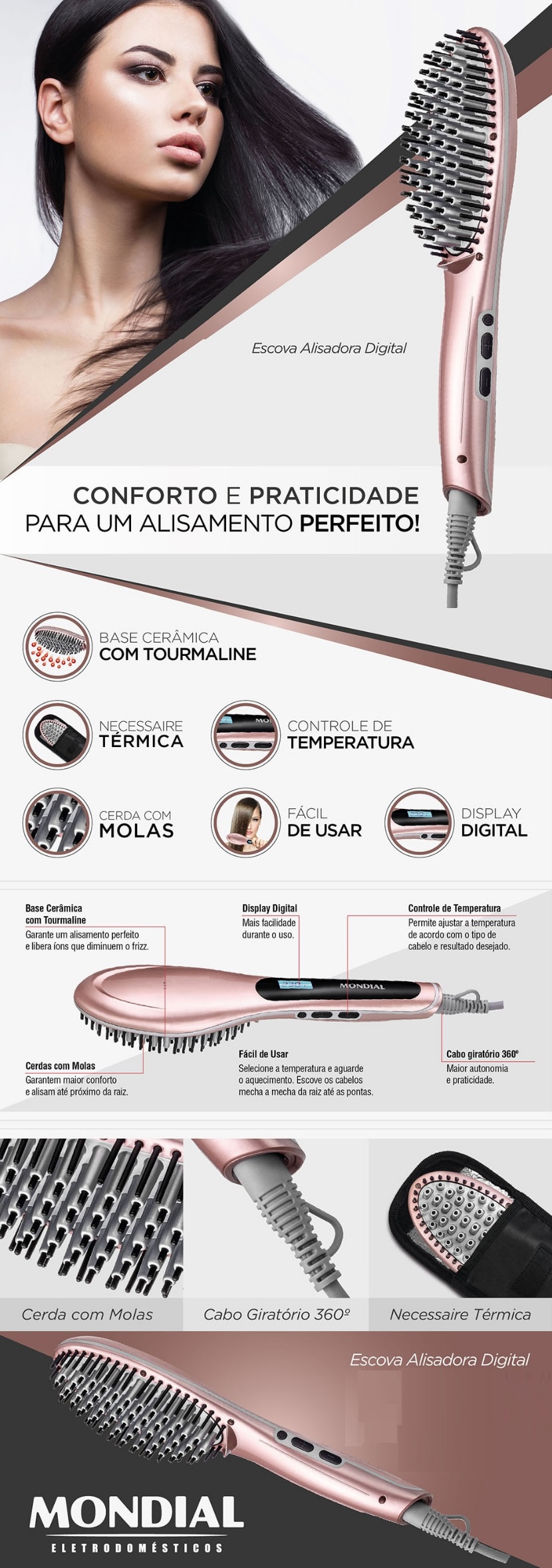 ESCOVA ALISADORA ELETRICA MONDIAL 60W - BIVOLT