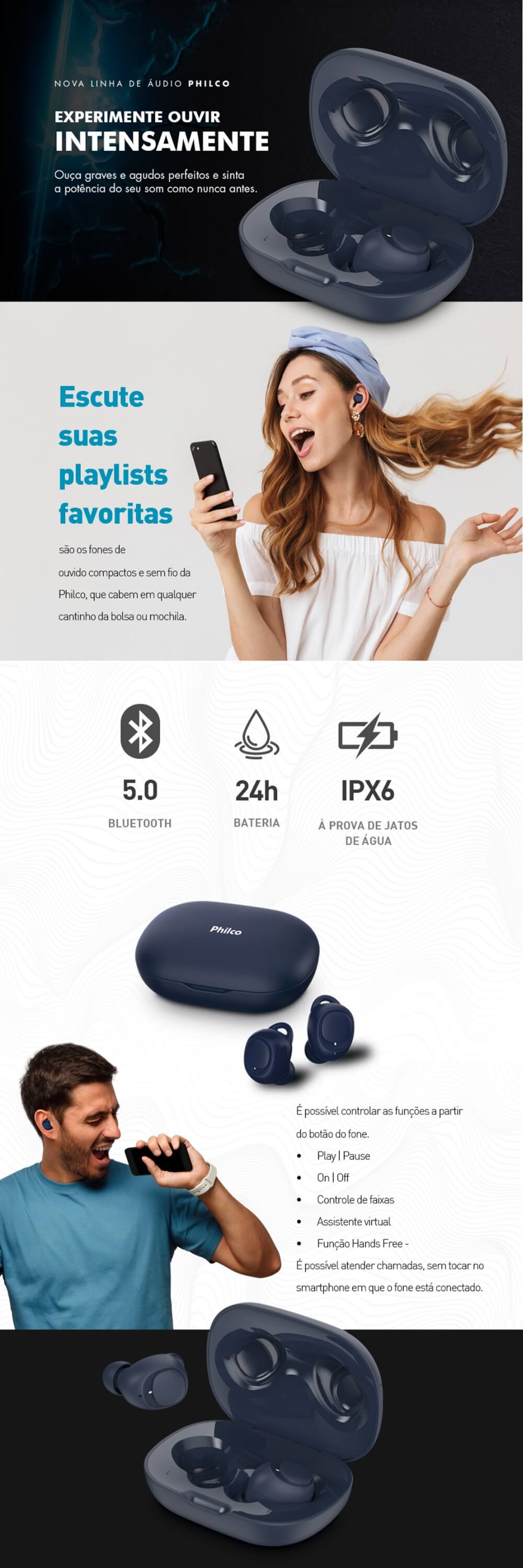 FONE DE OUVIDO BLUETOOTH PHILCO LUX LILAS - C/ MICROFONE - RESISTENTE AO SUOR