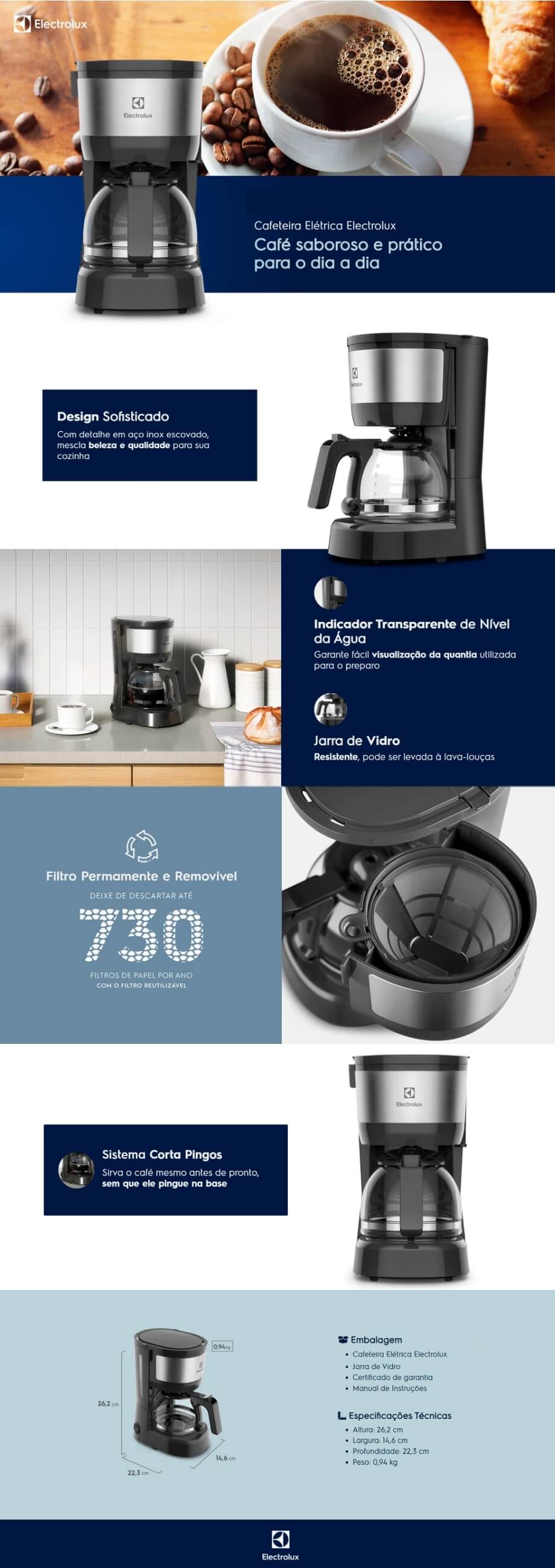 CAFETEIRA ELETRICA ELECTROLUX 600W FAZ 15 CAFES