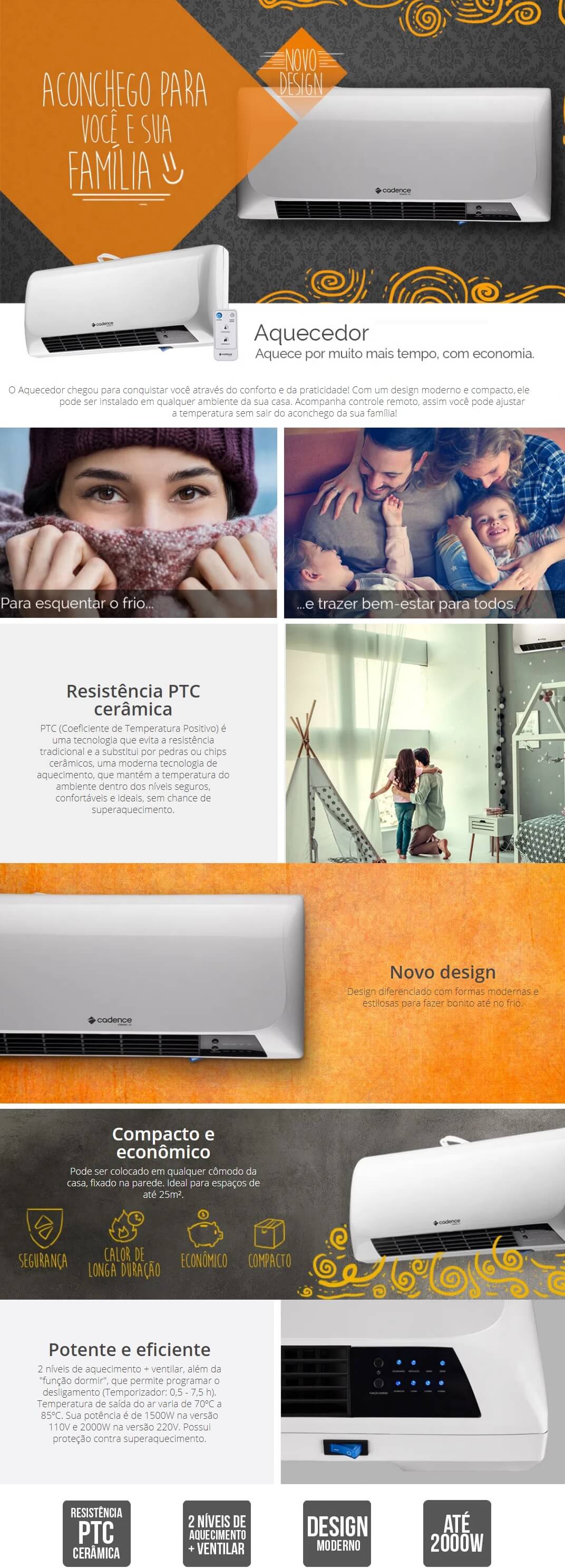 AQUECEDOR CADENCE 2000W - C/ CONTROLE REMOTO - BRANCO 220V