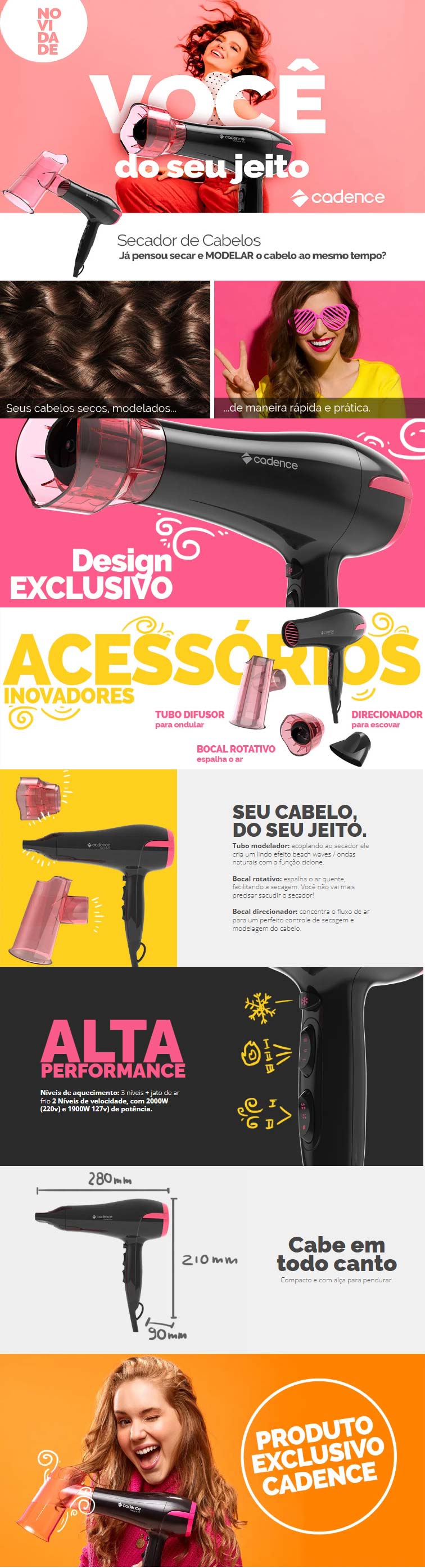 SECADOR DE CABELO CADENCE C/ TURBO DIFUSOR - 2000W - 110V