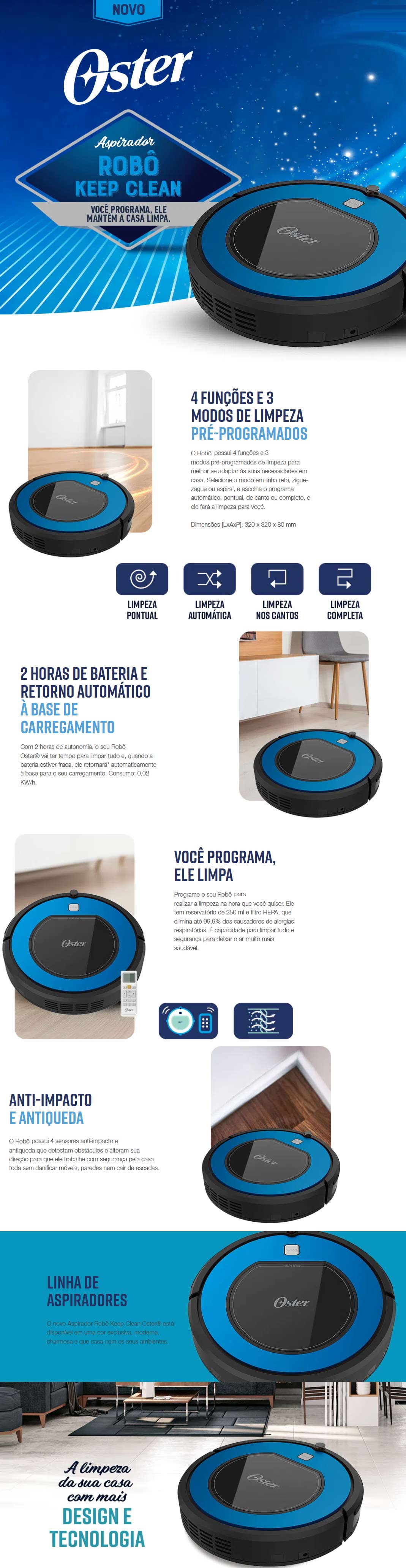 ASPIRADOR DE PO ROBO A BATERIA OSTER BIVOLT