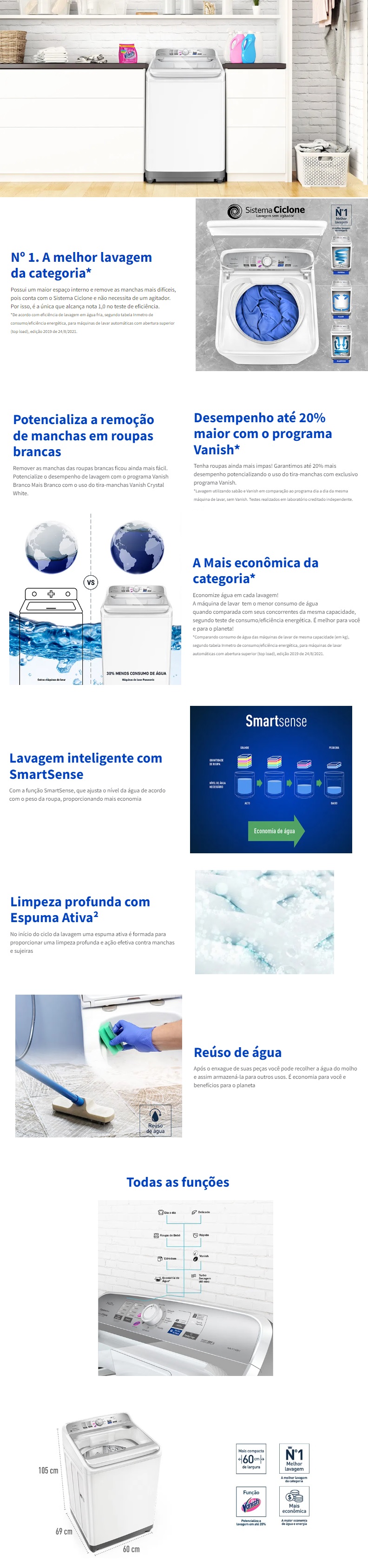 LAVADORA PANASONIC BRANCA 14KG 8 PROGRAMAS DE LAVAGEM CESTO EM INOX