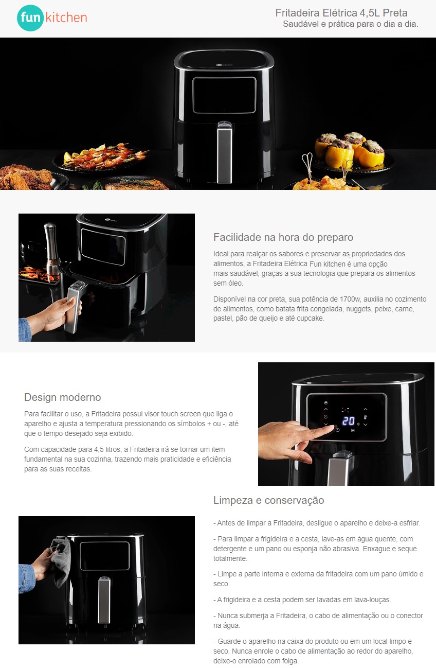 FRITADEIRA ELETRICA Air Fryer DIGITAL SEM OLEO 4,5L PRETA 1700W - FUN KITCHEN