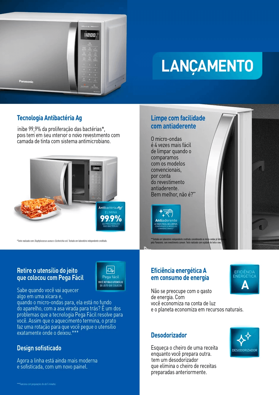 MICRO-ONDAS PANASONIC 21L ESPELHADO PAINEL DIGITAL 700W