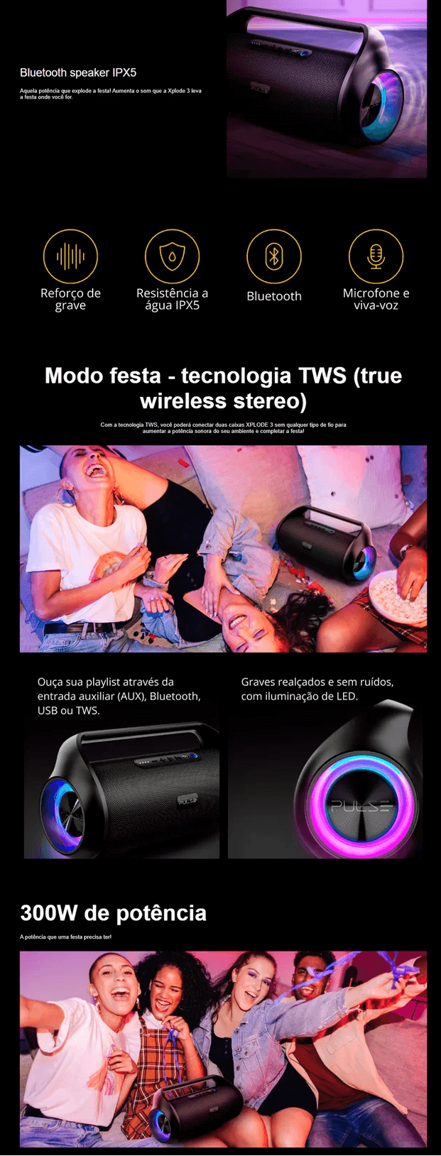 CAIXA DE SOM POTENTE 300W BLUETOOTH USB MULTILASER