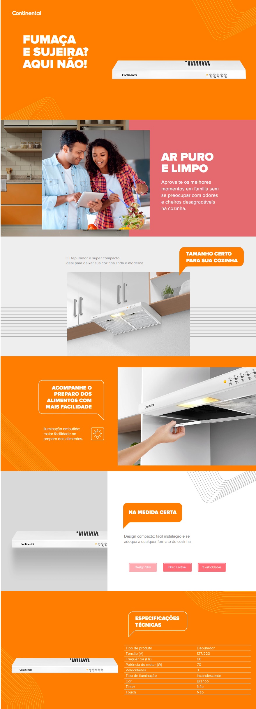 DEPURADOR DE AR CONTINENTAL LUX COOK 80CM 70W - BRANCO