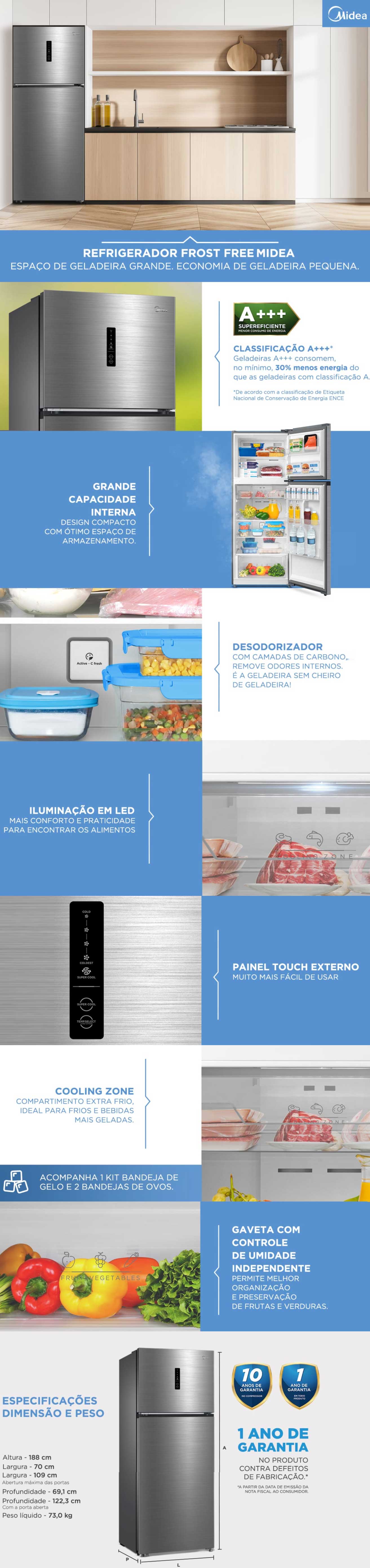 Geladeira Refrigerador Midea 460L Frost Fee Duplex com Painel Digital