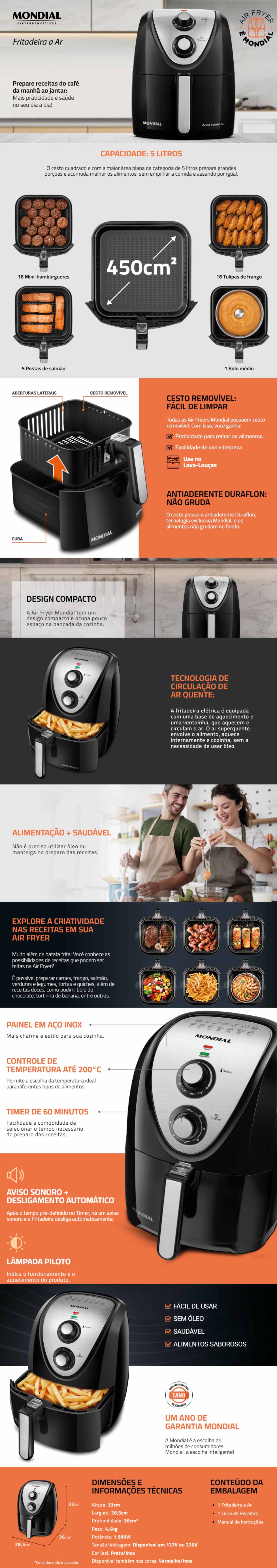Air Flayer Mondial Fritadeira Eletrica 1900w Com Timer
