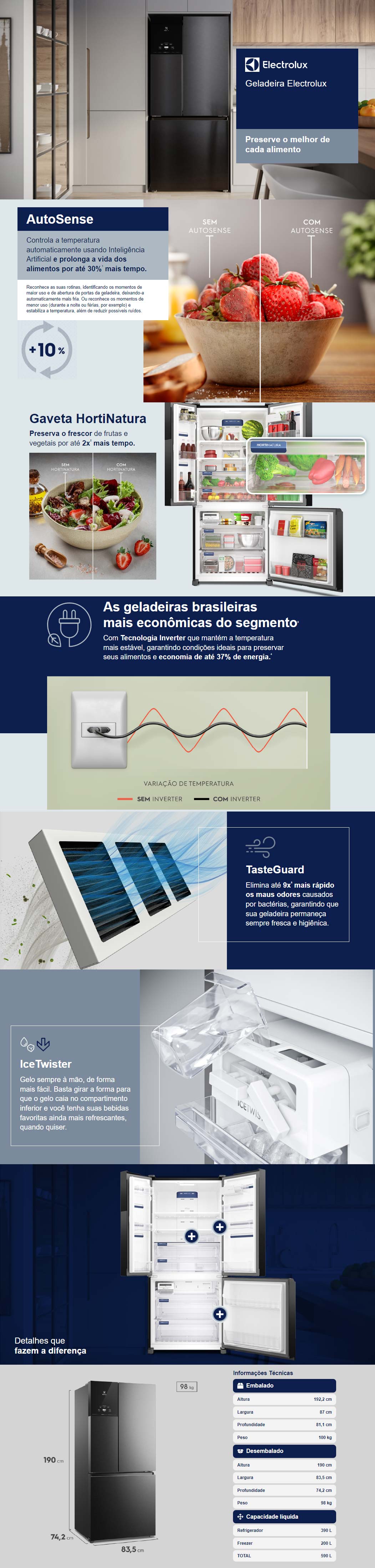 Geladeira Refrigerador Electrolux Side by Side 588L Frost Free Inverter