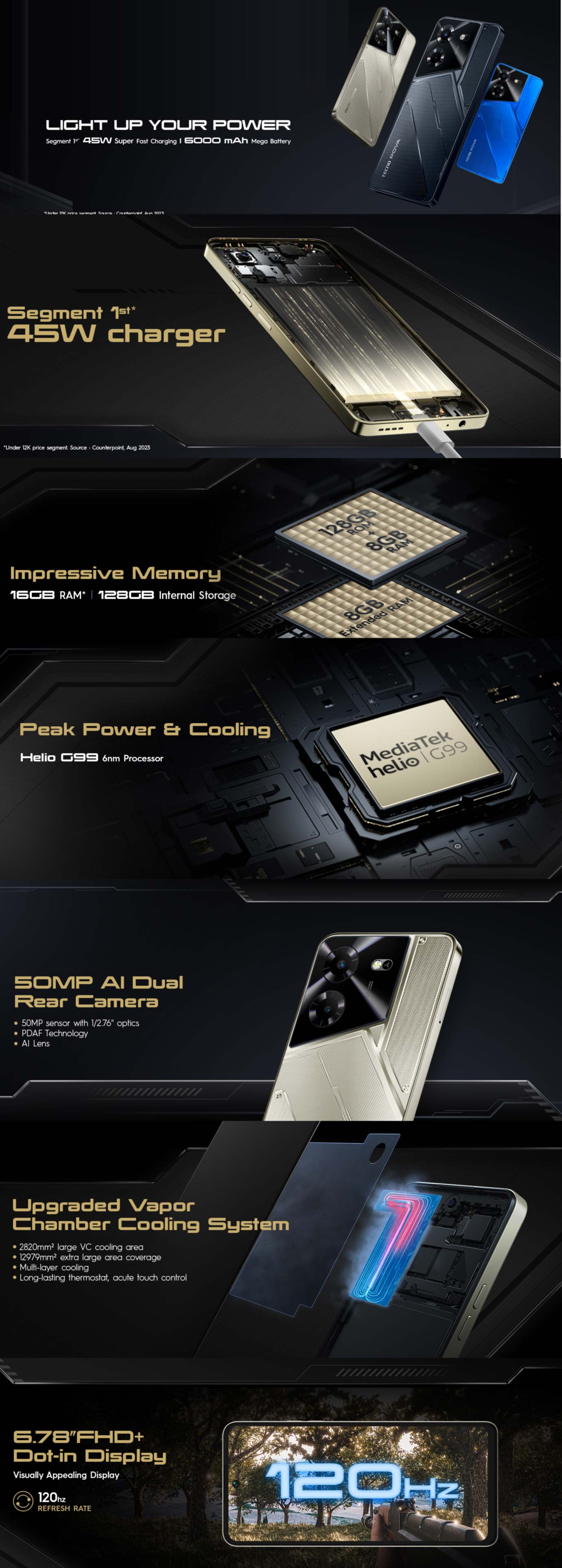 Smartphone Gamer Tecno 8GB Ram 256GB Camera 50Mpx Android 13