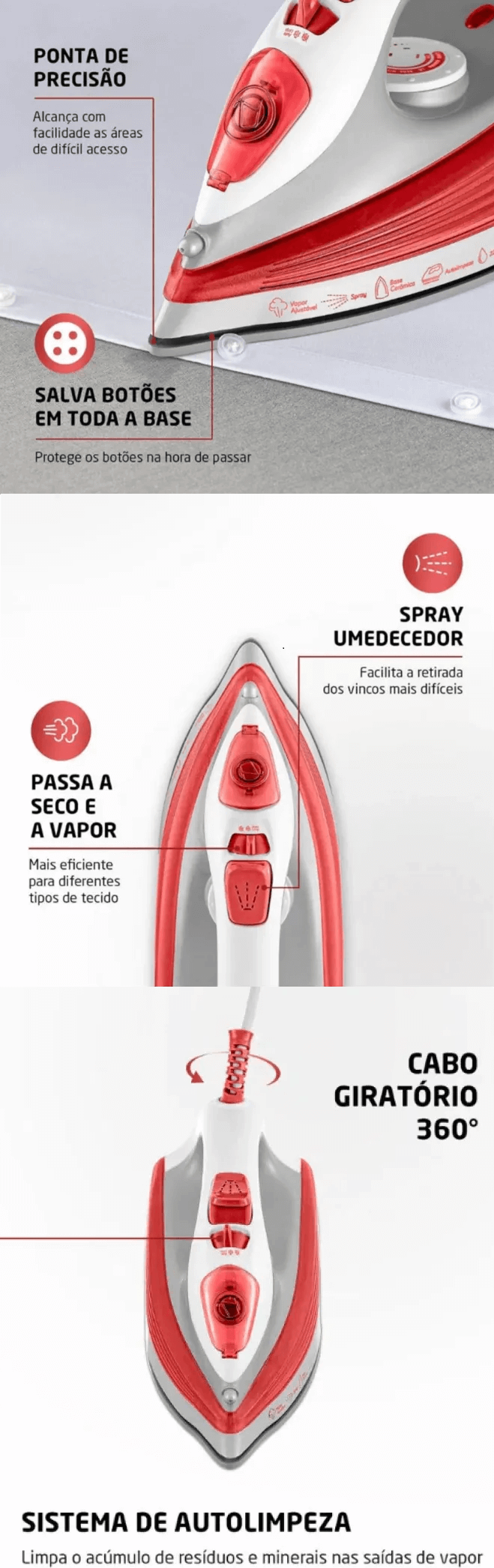 Ferro De Passar A Vapor Mondial Ceramic Turbo 1200W