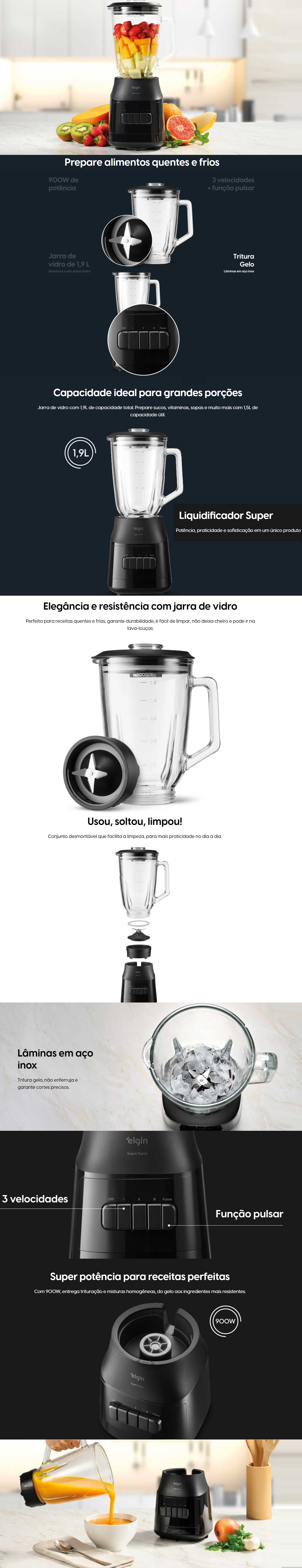Liquidificador Elgin Titanium Black Jarra de vidro 900W Ultra Turbo