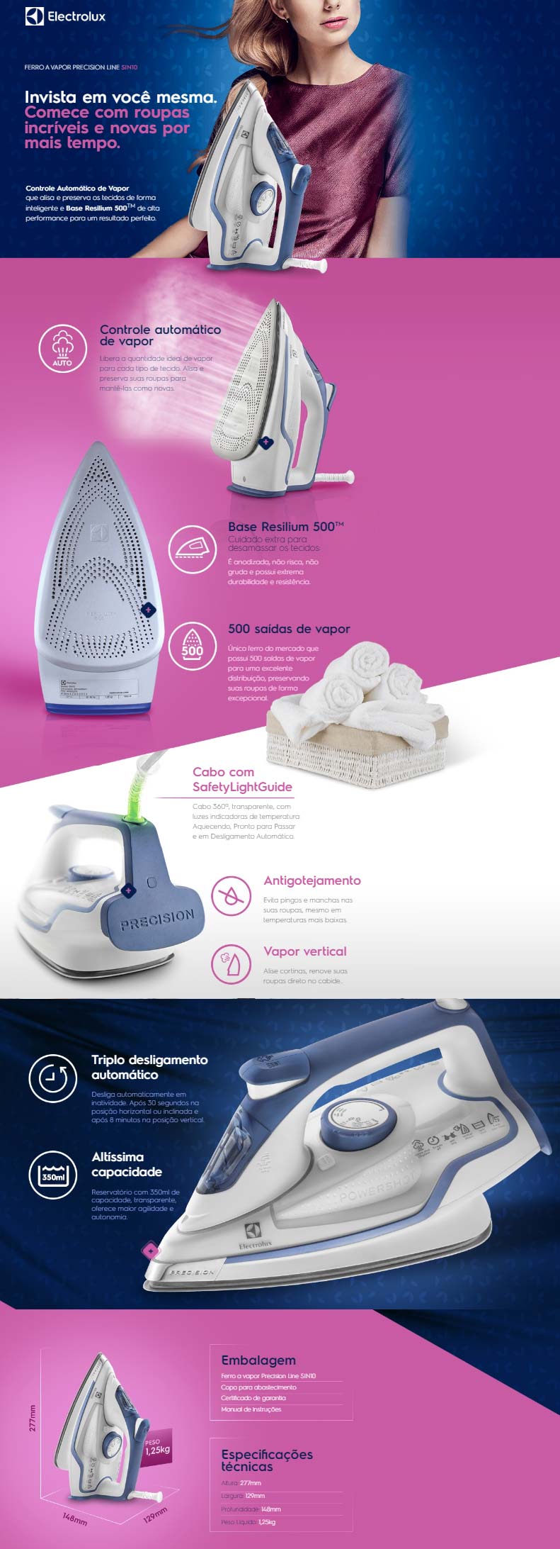 Ferro de Passar a Vapor Electrolux 1800W Turbo Splay 127V