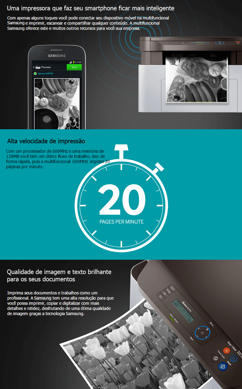 IMPRESSORA MULTIFUNCIONAL 110V A LASER MONO SAMSUNG WIFI USB FUNÇÃO 3X1 110v 21ppm