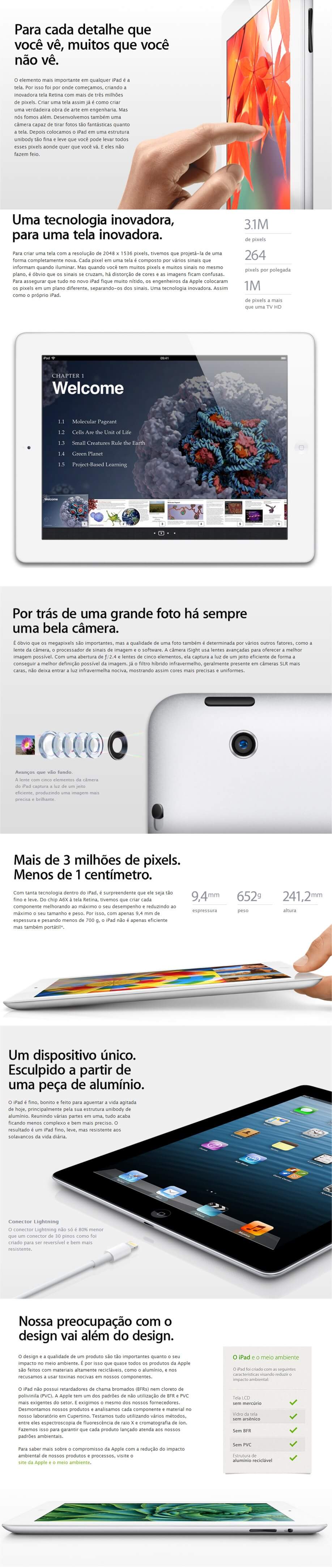IPAD 4GERACAO APPLE DUAL CORE 16GB - TELA 9,7 MULTI-TOUCH C/ WIFI E BLUETOOTH - CAMERA 5MP