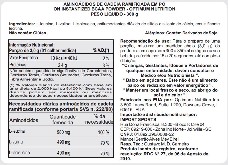 SUPLEMENTO BCAA GANHO DE MASSA E RESISTÊNCIA MUSCULAR - 300g - EM PÓ