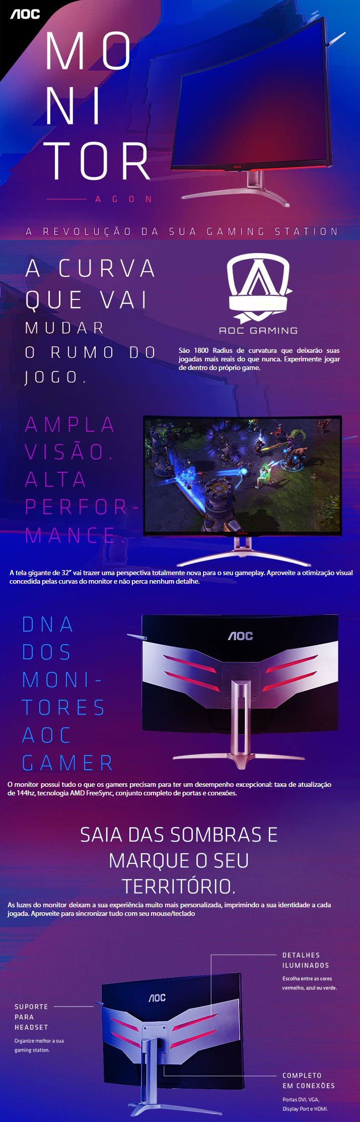 MONITOR GAMER AOC CURVE 32 VGA HDMI DVI