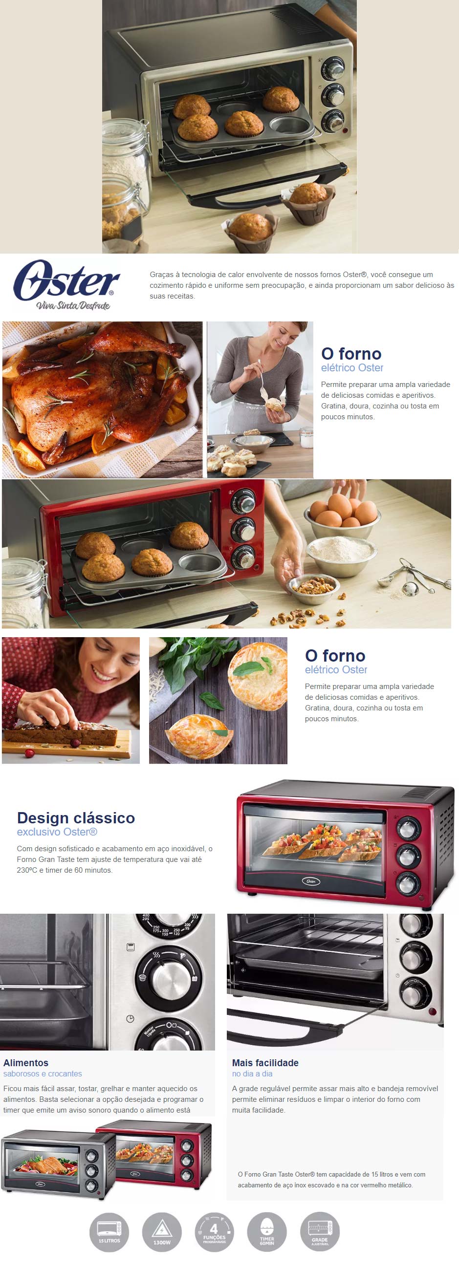 FORNO ELETRICO OSTER 15L 1500w Função 3x1 - RED
