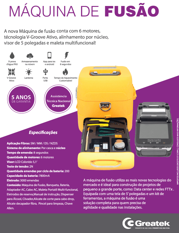 MAQUINA DE FUSÃO FIBRA OPTICA SIX MOTOR SM/MM