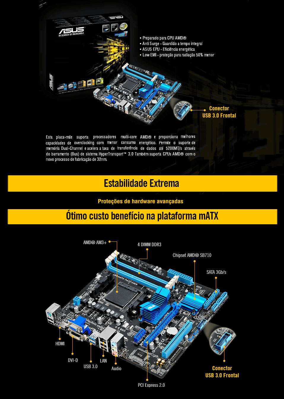 PLACA MAE ASUS P/ AMD USB 3.0 HDMI/DVI/VGA USB 3.0 FRONTAL AUDIO GAMER