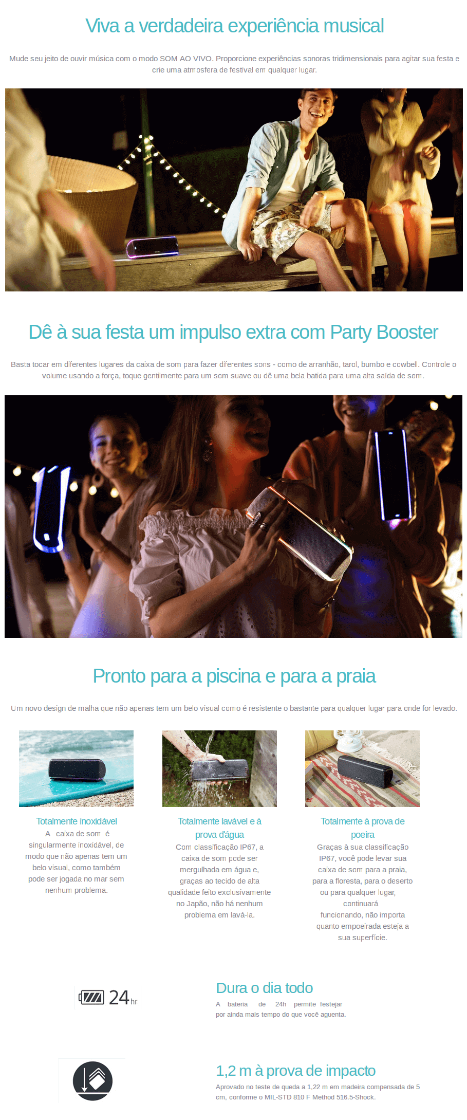 CAIXA DE SOM PORTATIL SONY MULTICOLORIDA BLUETOOTH USB NFC BATERIA 24h