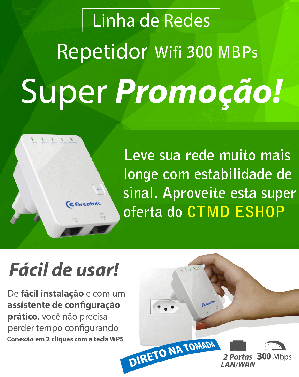 REPETIDOR WIFI 300 MBPS GREATEK 2.4 GHz 20dBm Preto