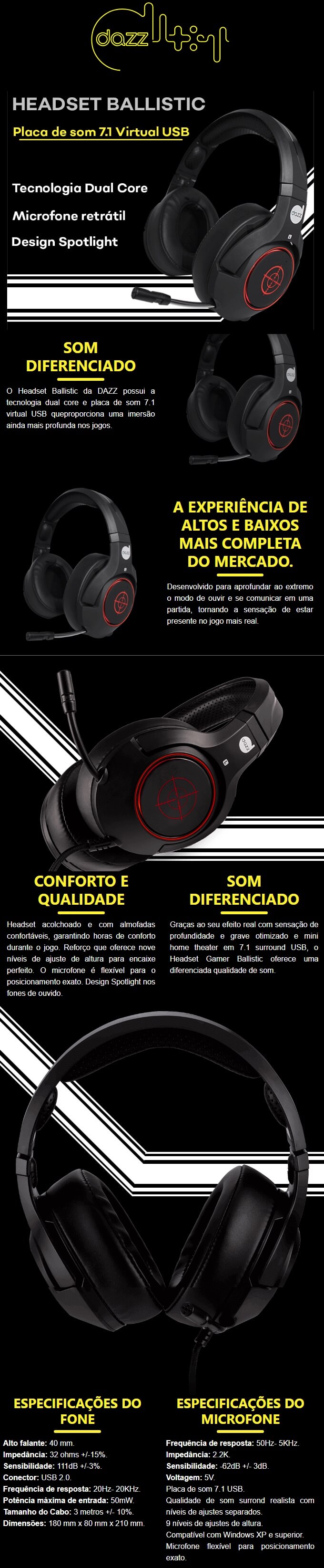 FONE DE OUVIDO C/ MICROFONE MILITAR BALLISTIC SOM DEDICADO 7.1 USB