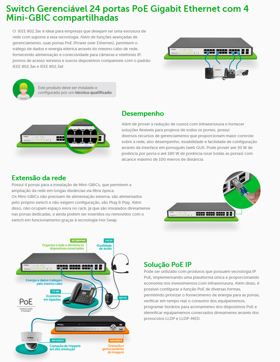 SWITCH GERENCIAVEL INTELBRAS 24 PORTAS 4 PORTAS FIBRA - BIVOLT