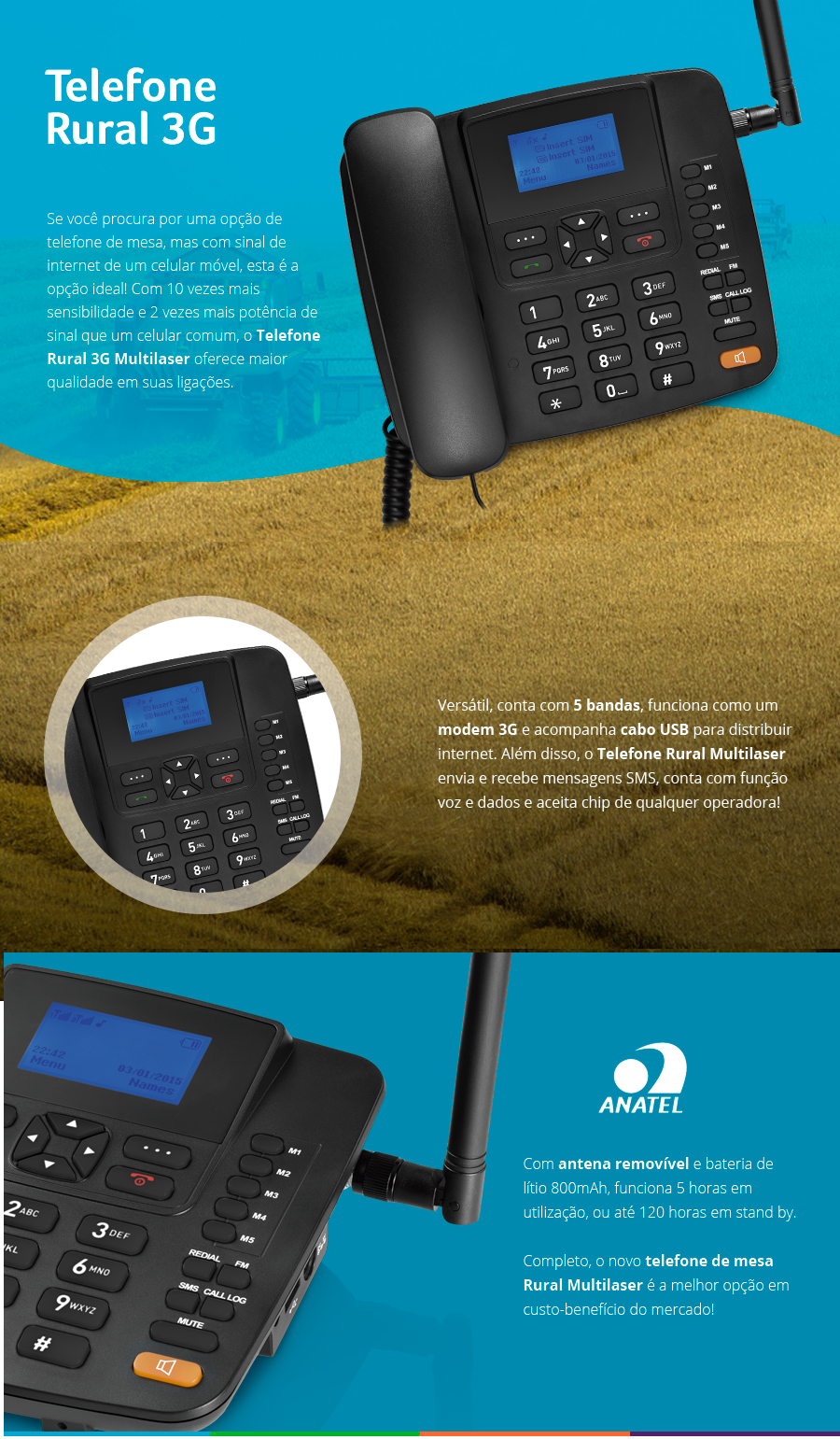TELEFONE FIXO CELULAR 3G C/ IDENTIFICADOR VIVA VOZ 01 CHIP MODEM INTERNET