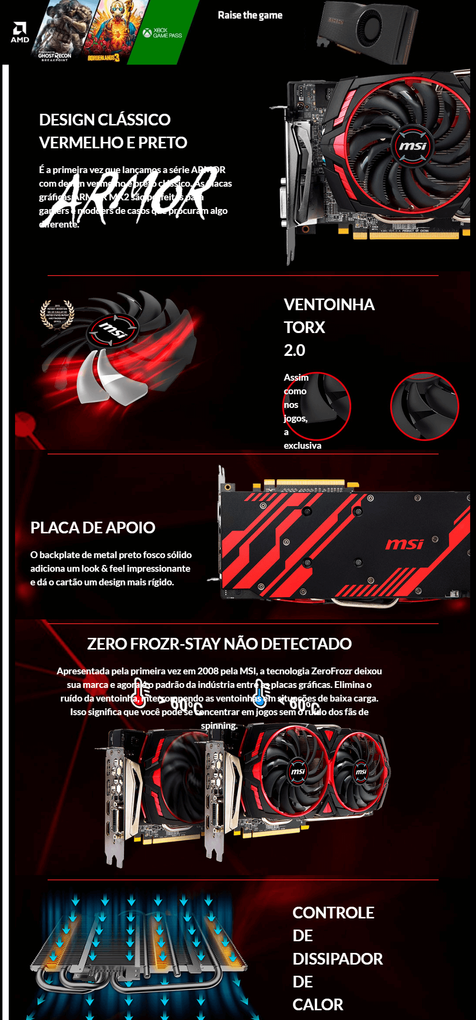 PLACA DE VIDEO MSI AMD 8GB GDDR5 8000MHZ 256BITS PCI EXPRESS X16