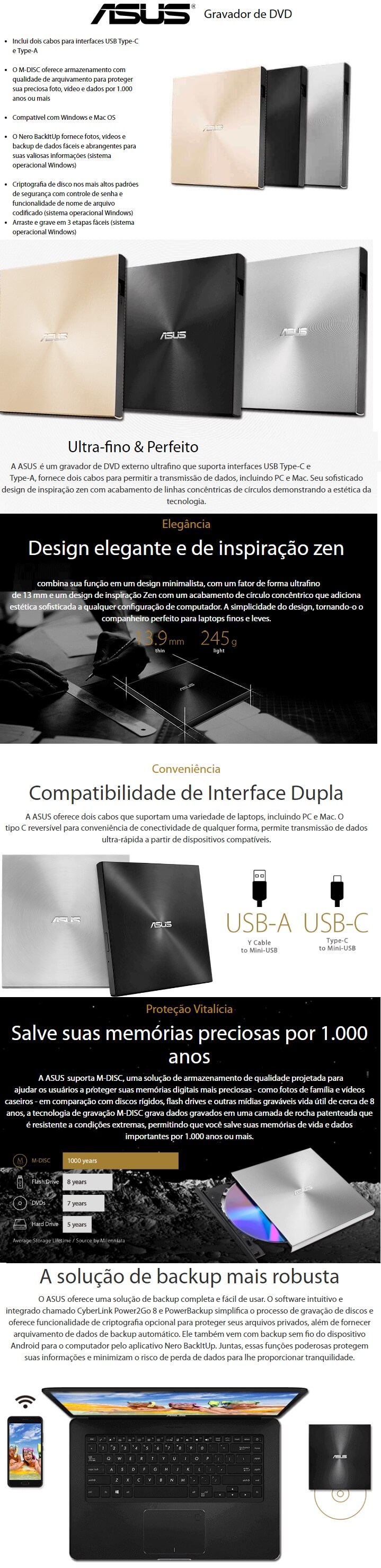 GRAVADOR DE CD/DVD ASUS ULTRA SLIM 8X USB 2.0 TYPE A/C