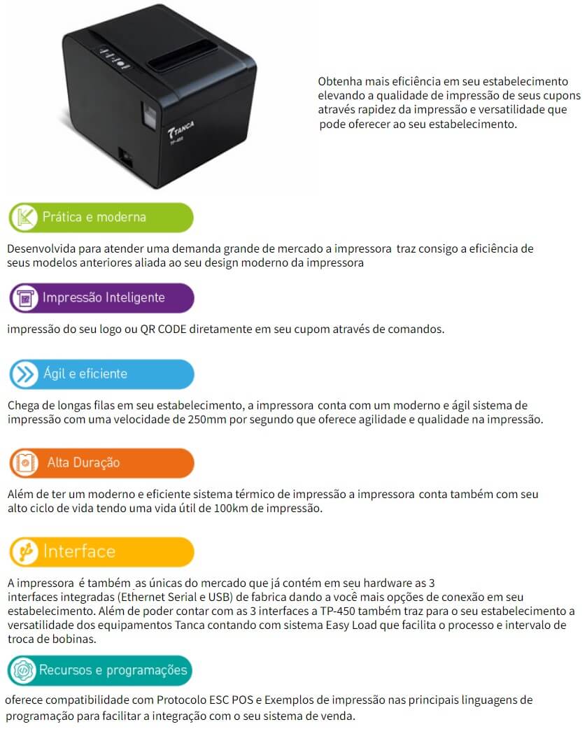 IMPRESSORA NAO FISCAL TERMICA TANCA SERRILHA USB SERIAL ETHERNET