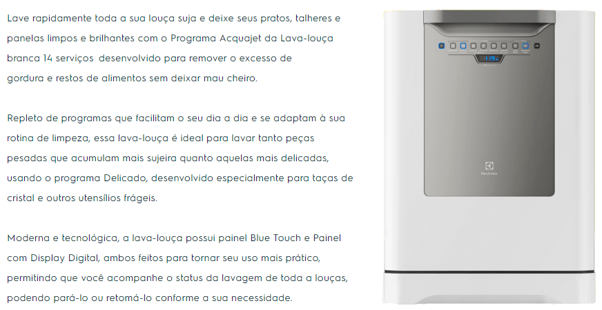 LAVA LOUÇAS ELETROLUX 14 SERVIÇOS AQUAJET 1250W - BRANCA